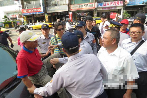 雙方在現場一陣拉扯,互相嗆聲,“愛國同心會”人士趁機奪下“臺聯黨”的抗議牌子撕爛,高喊“只有中國,沒有兩邊”、“回去找你們李登輝”。隨后警方強行介入隔開雙方,還要求“一人一邊、各自表述”,不要有違法的言行。