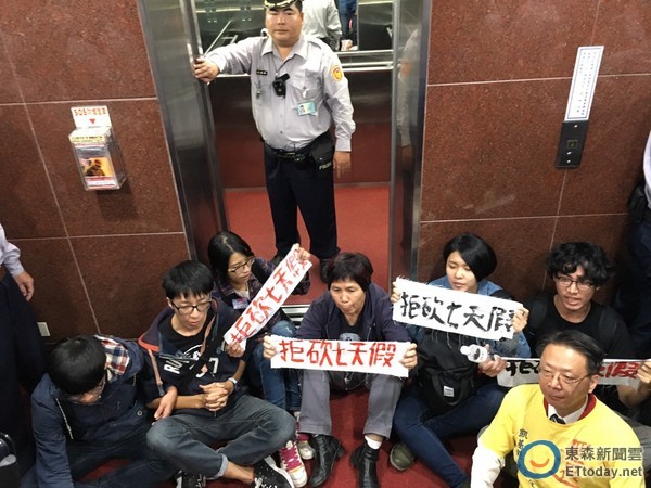 中國(guó)臺(tái)灣網(wǎng)11月16日訊 據(jù)臺(tái)灣“東森新聞云”報(bào)道,臺(tái)“立法院”16日上午召開“勞基法”修法公聽會(huì),民進(jìn)黨、國(guó)民黨、時(shí)代力量與親民黨“立法院”黨團(tuán)總共邀了28名代表進(jìn)場(chǎng),會(huì)議一開始,現(xiàn)場(chǎng)就氣氛火爆。在“召委”陳瑩宣布休息10分鐘后,勞團(tuán)代表更高喊抗議,過(guò)程中發(fā)生推擠沖突,造成陳瑩跌倒,被警方帶出議場(chǎng)安置在小房間;另外,已絕食288小時(shí)的勞團(tuán)代表許惟棟也不支倒地,隨后被送往臺(tái)大醫(yī)院。(中國(guó)臺(tái)灣網(wǎng) 盧佳靜)