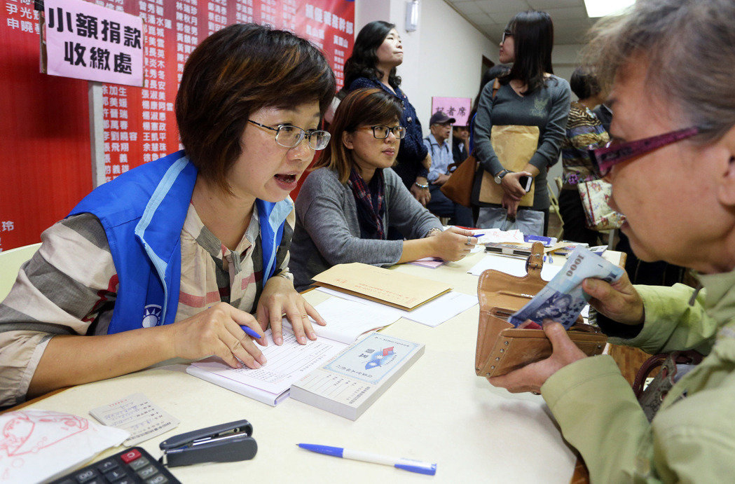 許多民眾都在現場掏出千元鈔當場捐獻。(圖片來源:臺灣“聯合新聞網”)