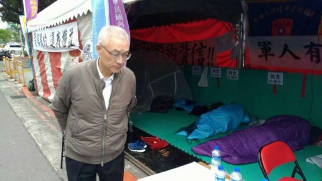 據臺灣媒體報道,監督年金改革行動聯盟在“立法院”前的接力絕食進入第4天,繼昨日國民黨副主席郝龍斌到現場探視后,同樣宣布參選國民黨主席的前臺灣地區副領導人吳敦義19日上午8時許也到場探視并與現場退休軍公教人士交換年金改革意見。