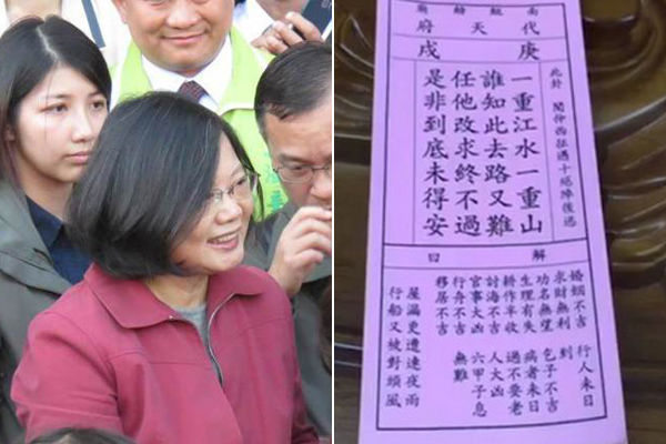 據報道,南鯤鯓代天府前年“國運簽”抽中“武則天坐天”詩簽,各方解讀意指蔡英文將登上臺灣地區領導人之位,引發熱議。28日上午南鯤鯓代天府卻抽中第54 號“國運簽”,簽詩“一重江水一重山,誰知此去路又難,任他改求終不過,是非到底未得安”,是少數的下下簽,再度引發討論。