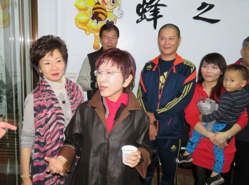 中國(guó)臺(tái)灣網(wǎng)3月13日訊 據(jù)臺(tái)灣《聯(lián)合報(bào)》報(bào)道,國(guó)民黨主席洪秀柱13日傍晚,抵苗栗縣頭份市拜訪青年養(yǎng)蜂農(nóng)劉國(guó)科,親切的與劉國(guó)科2個(gè)年幼的兒子打成一片,童言童語(yǔ)玩親親,一起喝鮮甜的蜂蜜水。洪秀柱以采蜜被蜂群攻擊、叮咬,都要咬緊牙關(guān)忍下來(lái),期勉基層黨工,務(wù)必做好這次黨內(nèi)選舉。