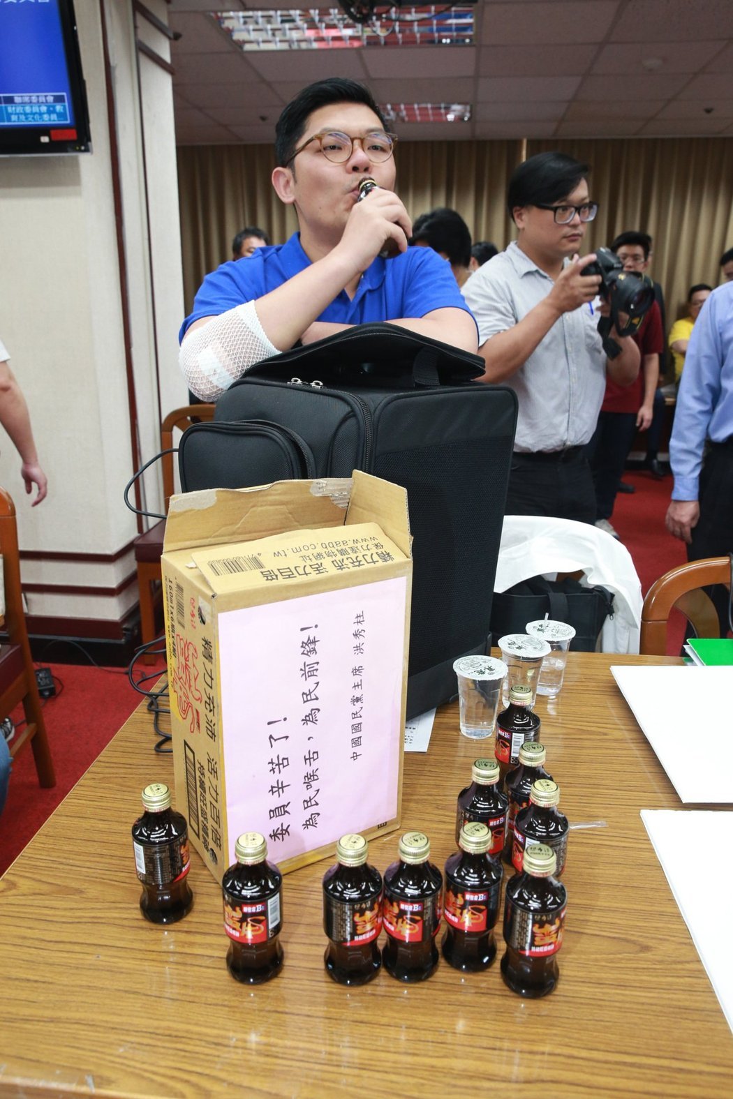 今日藍綠兩軍再度爆發激烈推擠沖突,人數占優的民進黨團以人墻護衛主席臺,國民黨團則不斷高喊“時程減半,八年改四年”等口號。藍、綠一度在主席臺前混戰、推擠,哨子、喇叭滿天響,面粉滿天飛,不少“綠委”都灰頭土臉。中國國民黨主席洪秀柱一早特意送來一箱的“蠻牛”(維生素功能飲料),為國民黨“立委”加油,要他們“喝了,再上!”。