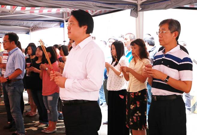 林右昌不慎遭到隨員開車門時撞擊到臉部,造成右眼周圍受傷,今午帶傷參加市府舉辦的普渡行程。(圖片來源:臺灣《中國時報》)