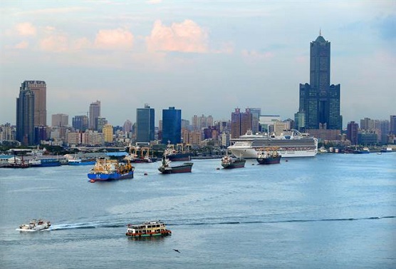 從旗津燈塔遠眺高雄一港口港灣和包括高雄地標85大樓等城市景觀。(圖片來源:臺灣“中時電子報 ”)