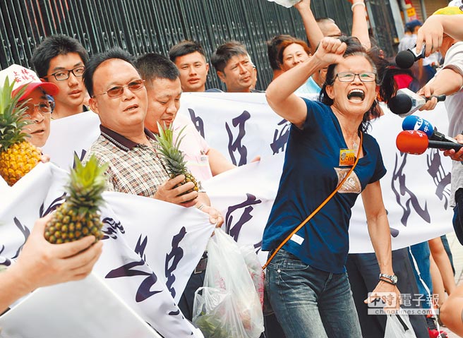 中國臺灣網7月5日訊 據臺灣《中國時報》報道,臺灣200多位鳳梨農昨(4日)集結臺當局“行政院”前抗議、怒砸鳳梨,國民黨云林縣長參選人張麗善陪農民遞交“十大救農建言書”。有農民說,為了“行政院長”賴清德的“務實臺獨工作者”言論,“臺獨”變成“臺灣農產品有毒”,從今年3月以后外銷訂單都沒了。
