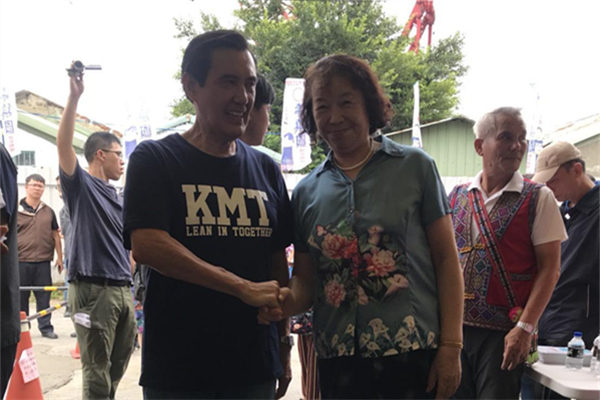 馬英九(左)今到永康、仁德陪同黨籍臺(tái)南市長(zhǎng)參選人高思博車隊(duì)游行,許多鄉(xiāng)親爭(zhēng)先上前合照,人氣高。(圖片來(lái)源:臺(tái)灣《聯(lián)合報(bào)》)