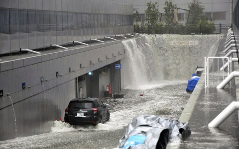 燕子臺風襲擊日本,大阪關西機場受到嚴重影響。(圖片來自臺媒)
