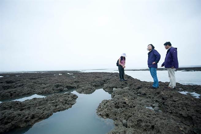 蔡英文于2013年4月20日發了一張照片,圖說寫道“在海岸線的風雨中,我拜訪了桃園新屋溪口的藻礁。相對于珊瑚礁是‘動物’造礁,藻礁則是‘植物’造礁,生長速度比珊瑚礁更慢,是全球難能可貴的生態。‘觀新藻礁’內含豐富藻類,還有小螃蟹跟其他生物前來覓食,這些小生物也更進一步吸引了保育類鳥群,讓這里的生態體系豐富而多元。”