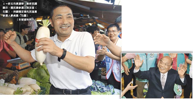 新北市長選舉,最新民調顯示,國民黨參選人侯友宜(左圖),持續穩定領先民進黨參選人蘇貞昌(右圖)。(圖片來源:臺灣“中時電子報”)