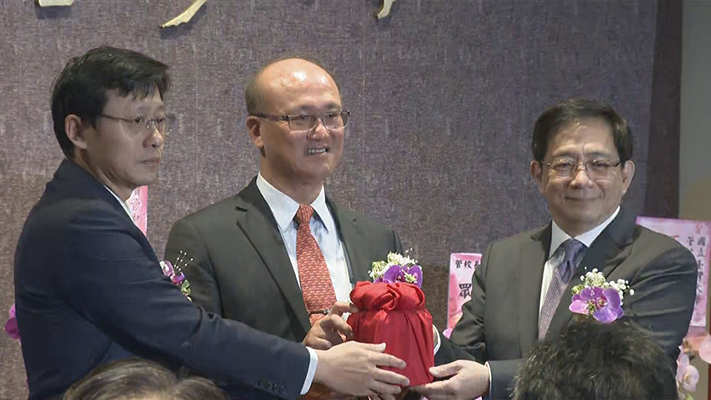 臺大新校長管中閔上午接任臺大校長,致詞時(shí)引述美國前總統(tǒng)約翰遜的話“昨天的風(fēng)雨過去了,明天才是我們奮斗的戰(zhàn)場”。(圖片來源:臺灣《聯(lián)合報(bào)》)
