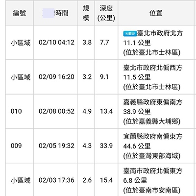 臺北市士林區(qū)昨天下午4時20分發(fā)生里氏3.2級的有感地震,不到12小時,今天凌晨4時12分再度發(fā)生里氏3.8級地震,震中鄰近震度加強。(圖片取自臺媒)