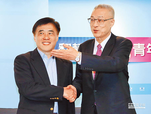 國民黨副主席郝龍斌(左)說,初選名單一定會有韓國瑜。右為國民黨主席吳敦義。(圖片來源:臺灣“中時電子報”)