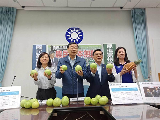 “藍委”曾銘宗拿出臺北農產運銷公司(北農)資料,指出番石榴每公斤平均價格今年2月為40.53元(新臺幣,下同)、3月為30.92元,但4月僅剩13.07元,去年同期價格則為41.92元;另外,菠蘿今年4月每公斤平均價格19.6元,去年同期則為37.31元,已讓農民血本無歸。他痛批陳吉仲,不要再搞網軍,拿不出具體辦法就趕快下臺負責。