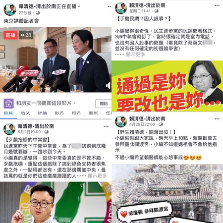 據(jù)報道,賴清德上午進行直播時,賴團隊的幕僚郭瓊俐在媒體Line群組丟出一個臉譜網(wǎng)賬號,并告知“賴清德媒體餐敘直播”。點入該賬號,卻是“賴清德-清出于南”的賬號,并非賴清德官方賬號。