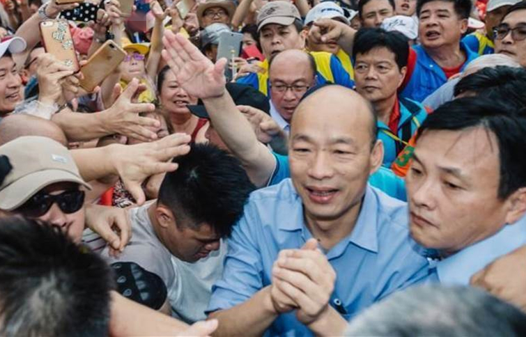 韓國瑜1日出席凱道挺韓大會師,現場涌入數十萬人,因熱情的韓粉簇擁,讓韓進場就走了10多分鐘。(圖片來源;臺灣“中時電子報”)