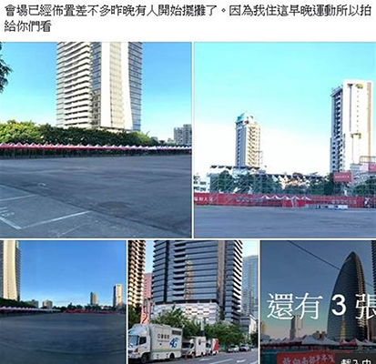 網(wǎng)友發(fā)文,韓國(guó)瑜臺(tái)中造勢(shì)會(huì)場(chǎng)已經(jīng)布置差不多,昨晚有人開(kāi)始擺攤了。(圖片取自臺(tái)媒)