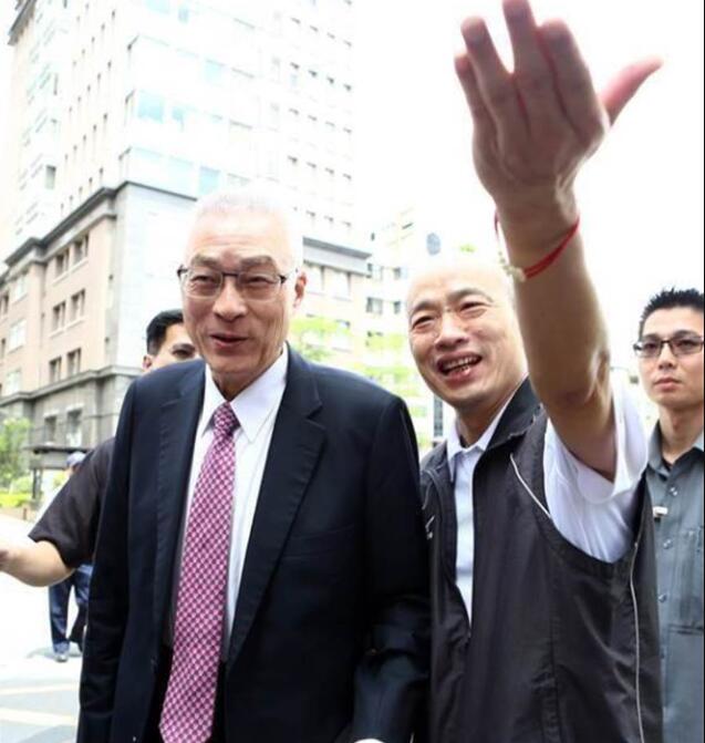 國(guó)民黨主席吳敦義(左)與贏得初選的黨內(nèi)候選人韓國(guó)瑜(圖片來(lái)源:臺(tái)灣《中時(shí)電子報(bào)》)