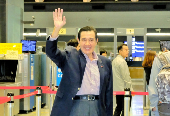 馬英九在抵達(dá)機(jī)場(chǎng)后低調(diào)不發(fā)一語(yǔ),僅在安檢前揮手致意。(圖片來(lái)源:臺(tái)灣《中央社》)