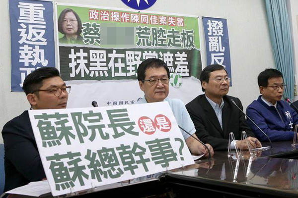 首席副書記長陳宜民表示,蘇貞身為“行政院長”竟然像競選辦公室總干事般,隨意指控他人、信口開河,還刻意以惡毒“魔鬼代言人”的言詞,羅織罪名把馬英九拉下水,這樣的“行政院長”已經不適任。“藍委”許毓仁則怒斥,陳同佳案真正的“魔鬼”是蘇貞昌、徐國勇與陳明通,三人把臺灣民眾蒙在鼓里,傻傻看著蔡當局表演“挺香港”“反送中”戲碼。(中國臺灣網 李奕均)
