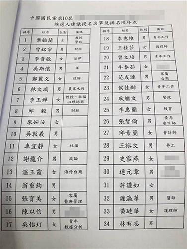 國民黨不分區“立委”名單。(圖片取自臺媒)
