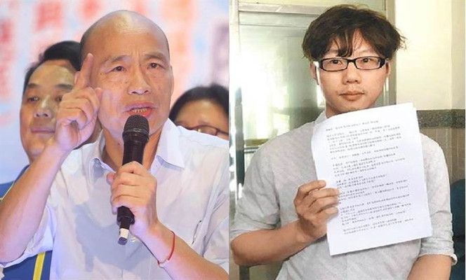 高雄市長韓國瑜(左)、“罷韓聯署領銜人”陳冠榮(右)(圖片來源:臺灣“中時電子報”)