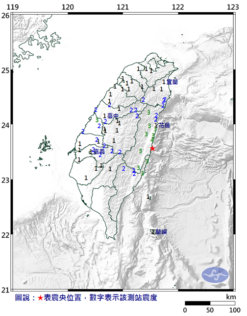 臺灣花蓮縣海域發(fā)生4.6級地震 震源深度24千米
