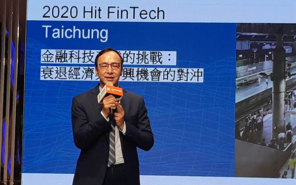 前新北市長朱立倫27日參加“第四屆《Hit FinTech》金融科技產(chǎn)業(yè)高峰會”。(圖片來源:臺灣“中時電子報”)