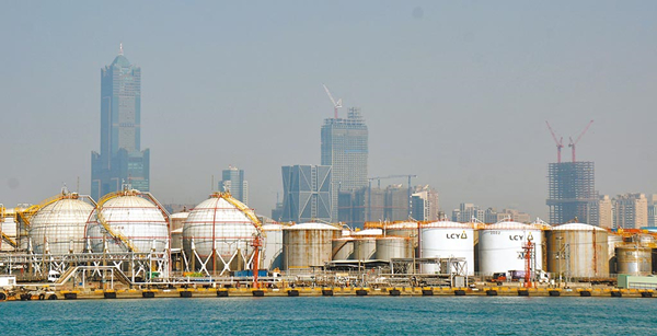 圖為遠(yuǎn)望高雄亞洲新灣區(qū)的石化儲槽密密麻麻。(圖片來源:臺灣“中時新聞網(wǎng)”)
