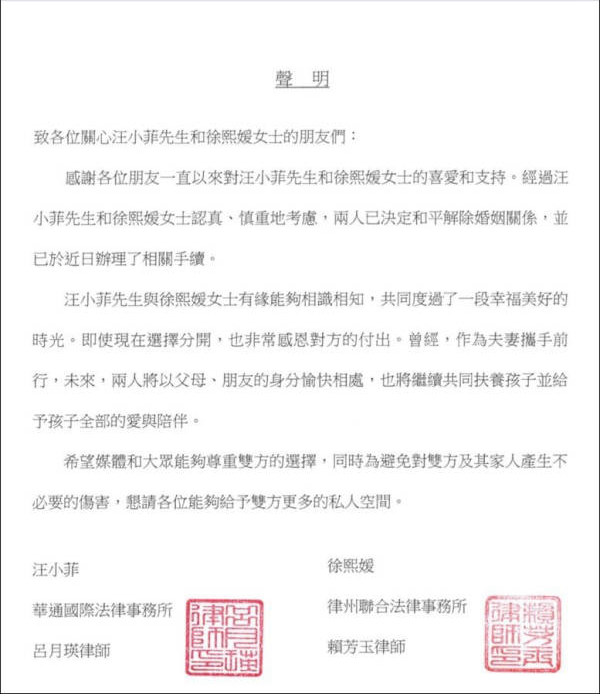 雙方發(fā)布離婚聲明。(圖片源自網(wǎng)絡(luò))