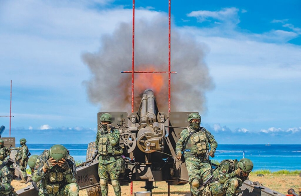 臺(tái)軍11日在屏東楓港執(zhí)行重炮射擊訓(xùn)練。(圖片取自臺(tái)媒)