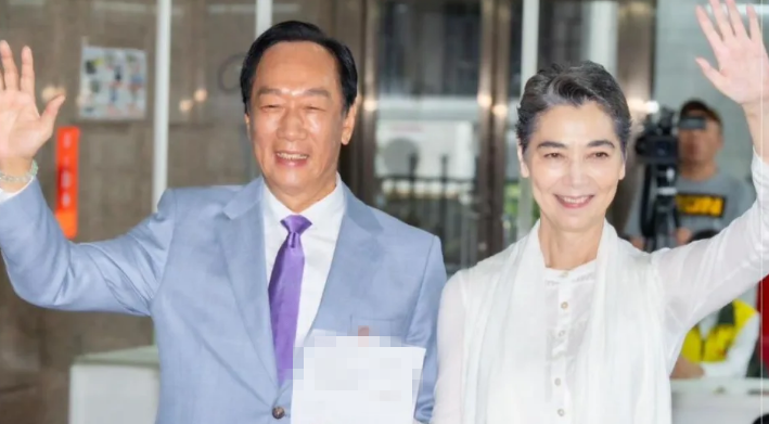 臺灣鴻海集團創辦人郭臺銘及其副手臺灣藝人賴佩霞。(圖片來源:臺灣TVBS)