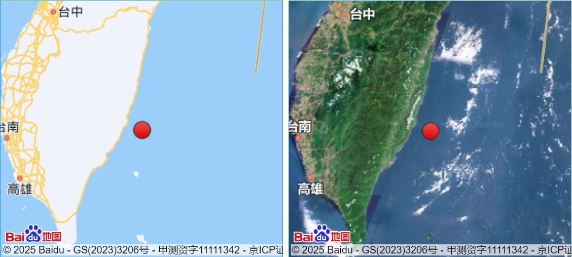臺灣臺東縣海域發生5.0級地震。(圖片來源:中國地震臺網)