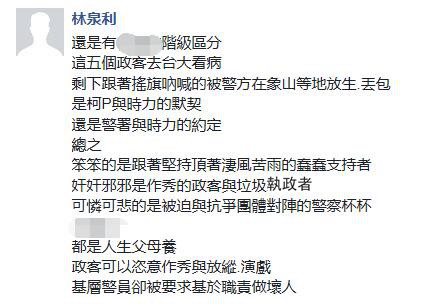 據臺灣《中時電子報》報道,黃國昌稍早時還在臉譜網(facebook)表示,“很久很久沒有如此難過”,不是因為全身濕冷、不是因為超過40小時未進食、而是因為本來以為2016改變已經發生,“沒有想到我所熱愛的臺灣權柄的濫用,竟然依舊如此冷酷”;而當警方不斷柔性勸導其早點“離開休息”時,他又反唇相譏“你不要再演戲了”!