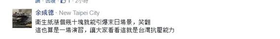 臺(tái)灣政論節(jié)目主持人黃智賢則發(fā)文說(shuō),所有大事,都沒(méi)有比買(mǎi)衛(wèi)生紙更重要,而“搶不到衛(wèi)生紙,是臺(tái)灣人崩潰的最新理由”;更嘲諷道,一直以來(lái)衛(wèi)生紙代表的是“毫無(wú)價(jià)值”,但民進(jìn)黨改寫(xiě)了衛(wèi)生紙的價(jià)值,這“也是民進(jìn)黨的最新政績(jī)”了。