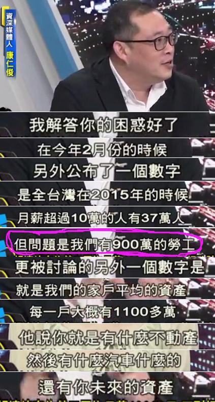 原來900萬勞工的平均薪資就是被其中那37萬月薪超過10萬的勞工拉高的……