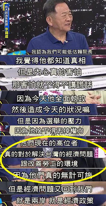 “數字”可以造假,“好話”誰都會說,可不管是“漂亮的數字”還是“騙人的好話”,都不可能長久,這點賴清德不知道嗎?蔡當局不清楚嗎?侃爺覺得這位臺大政治系的教授一語就點出了關鍵!
