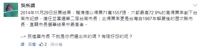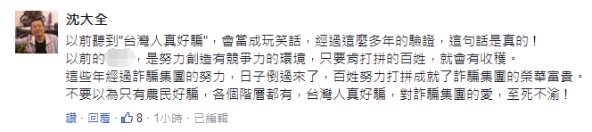 而在心疼之余,也有人認為,這些選民是“自作自受”,賴清德的臺南市長,蔡英文的臺灣地區(qū)領(lǐng)導人,不都是源自他們對“詐騙集團”至死不渝的愛么……