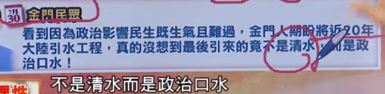 對此,有臺網(wǎng)友留言諷道,陸委會“秀下限,罔顧金門民眾民生”,民進黨當局“玩弄把戲!”金門民眾也表示,期盼近20年的大陸引水工程,沒想到最后引來的不是清水,而是民進黨的政治口水,既生氣又難過。