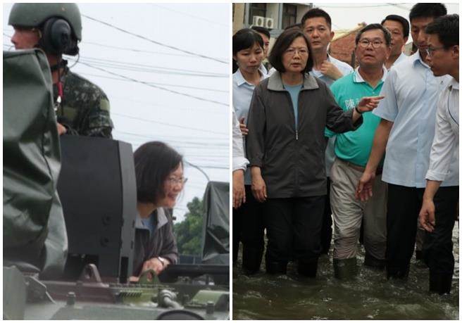 因南臺灣暴雨導致多地區淹水,蔡英文昨(25)日前往嘉義勘災,到達布袋鎮永安里時,當地村民原以為她是來體察民情,卻沒想到蔡竟然搭乘云豹裝甲車試圖駛入災區,期間還向受災民眾揮手致意,滿臉堆笑。
