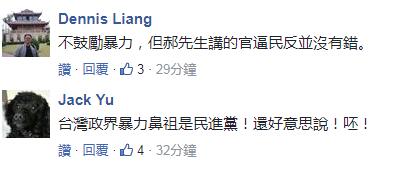 但這事兒可是捅了民進黨團的螞蜂窩啊,當事人的事后反擊也就罷了,然則還有從蔡當局前“行政院長”賴清德到“副院長”陳其邁,從“行政院”發(fā)言人谷辣斯到“內政部長”徐國勇,甚至蔡英文都出面聲援了,可謂是傾全黨之力啊,高舉“民主”和“言論自由”的大旗,皆強調:立場可以對話,暴力不能容忍……