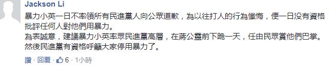 “從民進黨邱議瑩掌摑李慶華、管碧玲掌摑洪秀柱、蘇震清鎖喉陳宜民、黃偉哲砸傷吳育升、林淑芬砸傷吳成典、王定宇推倒張銘清等事中,蔡英文便已獲得‘暴力小英’的稱號”,新黨籍臺北市議員侯漢廷,在民進黨團聯(lián)手全力譴責暴力時,狠狠打臉對方,“他們以為,暴力應是民進黨的專利”!