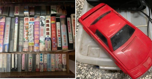 該網友上傳的照片中,可見上下兩層抽屜,里面裝的不是衣服而是許多早期錄影帶,其中不乏有“泳裝美女秀”、“艷舞歌謠”等讓人看名稱就會害臊的影帶,更有諸如“飯島愛”一類的日本AV影片。此外,照片中還有一臺紅色汽車外型的錄影帶倒帶機,可見爺爺的確裝備齊全。