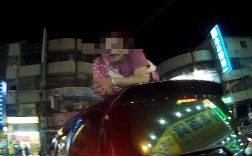 接報(bào)而來的警方,從遠(yuǎn)處就看到阮女“大”字形地站在車頂,“什么事啦,下來啦,你這樣不好看啦”、“你要不要先下來說”,但不管警方如何勸說,阮女都急躁拒絕并要求“叫我老公過來”,更趴在車頂持續(xù)與警方、車主僵持……