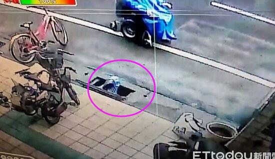 據(jù)附近店家的監(jiān)視器顯示,楊男起先探頭找尋,接著伸進(jìn)雙手,后來身體便失去重心,雙腳先卡在上方,最后整個(gè)人便倒栽蔥的掉了進(jìn)去,再看不見人影了!