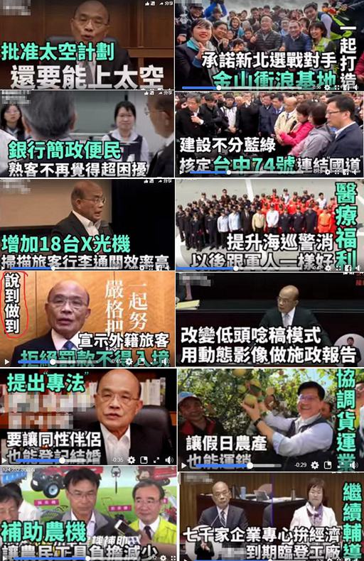 3月3日晚,蘇貞昌在自己的臉譜網上自稱公布了一則名為《沖沖沖的五十天》的政績影片,這支短片雖然只有1分20秒,但信息量那是相當相當大的啊:影片用Google小姐語音念旁白,細數了蘇“內閣”50天的驕人政績。
