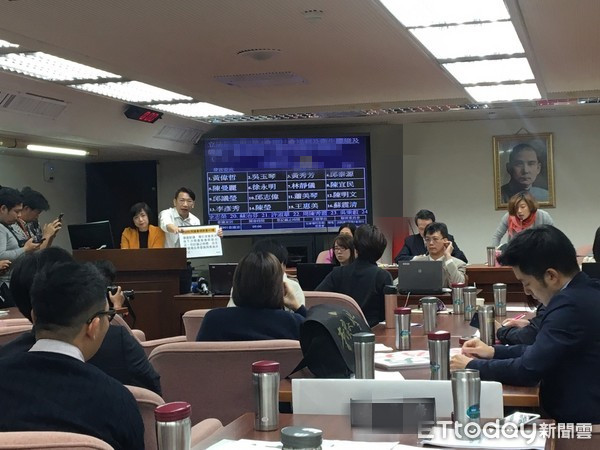 “一例一休勞基法修法”20日于“立法院委員會”初審,徐永明(中)強占質詢臺。(圖片來源:臺灣《聯合報》)
