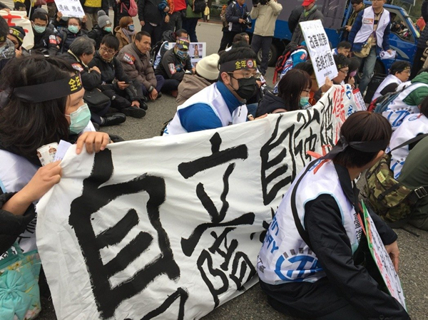 勞工在蔡英文辦公室前抗議。(圖片來源:臺灣《聯(lián)合報》)