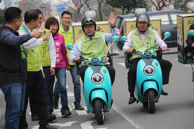 黃偉哲(右二)上街宣傳空污政策。(圖片來源:臺灣《中時電子報》)