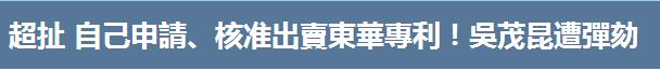 昨日的彈劾事件讓吳茂昆再一次走進公眾視野。臺灣《中國時報》今日發表題為《超扯 自己申請、核準出賣東華專利!吳茂昆遭彈劾》一文指出,吳遭爆任職東華校長期間,未經同意拿學校專利到美國開設師沛恩生技公司,涉嫌違法兼職且侵害東華專利被提案彈劾。“監察院”昨審查本案,13名“監委”全部具名投下成立票通過彈劾,全案將移送“公務員懲戒委員會。”